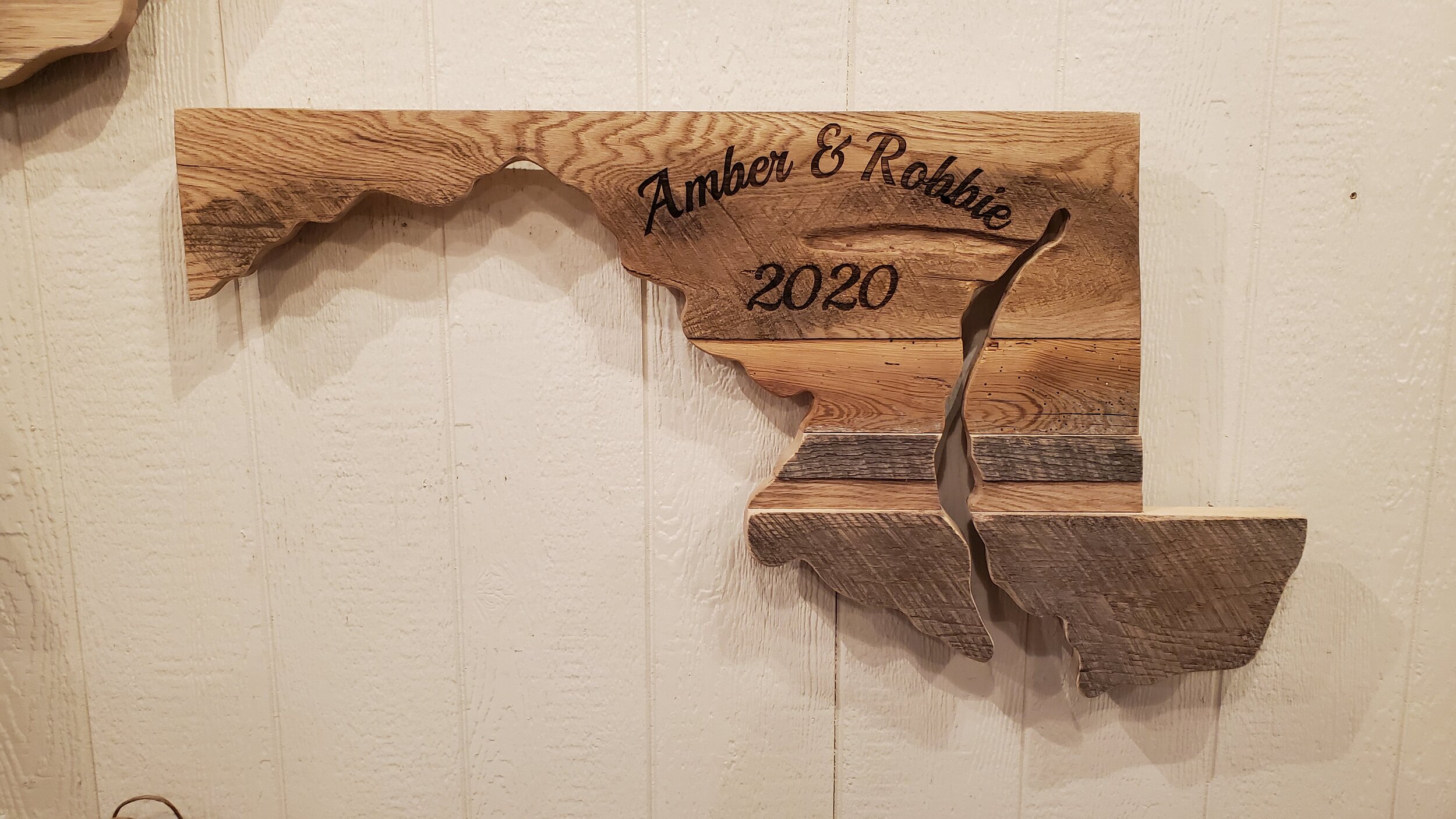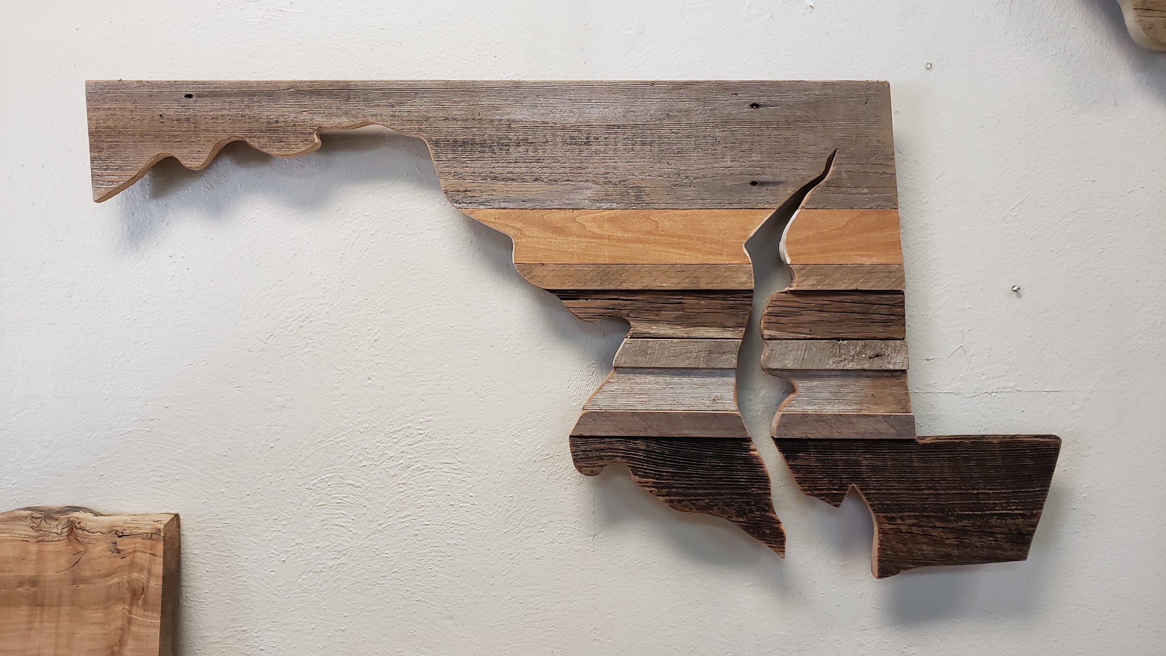 Show your love of home with a handmade one-of-a-kind work of art. Each state is made using 100% locally reclaimed wood. We write on the back where the wood came from so you know its history. Photos are examples. No two are alike!