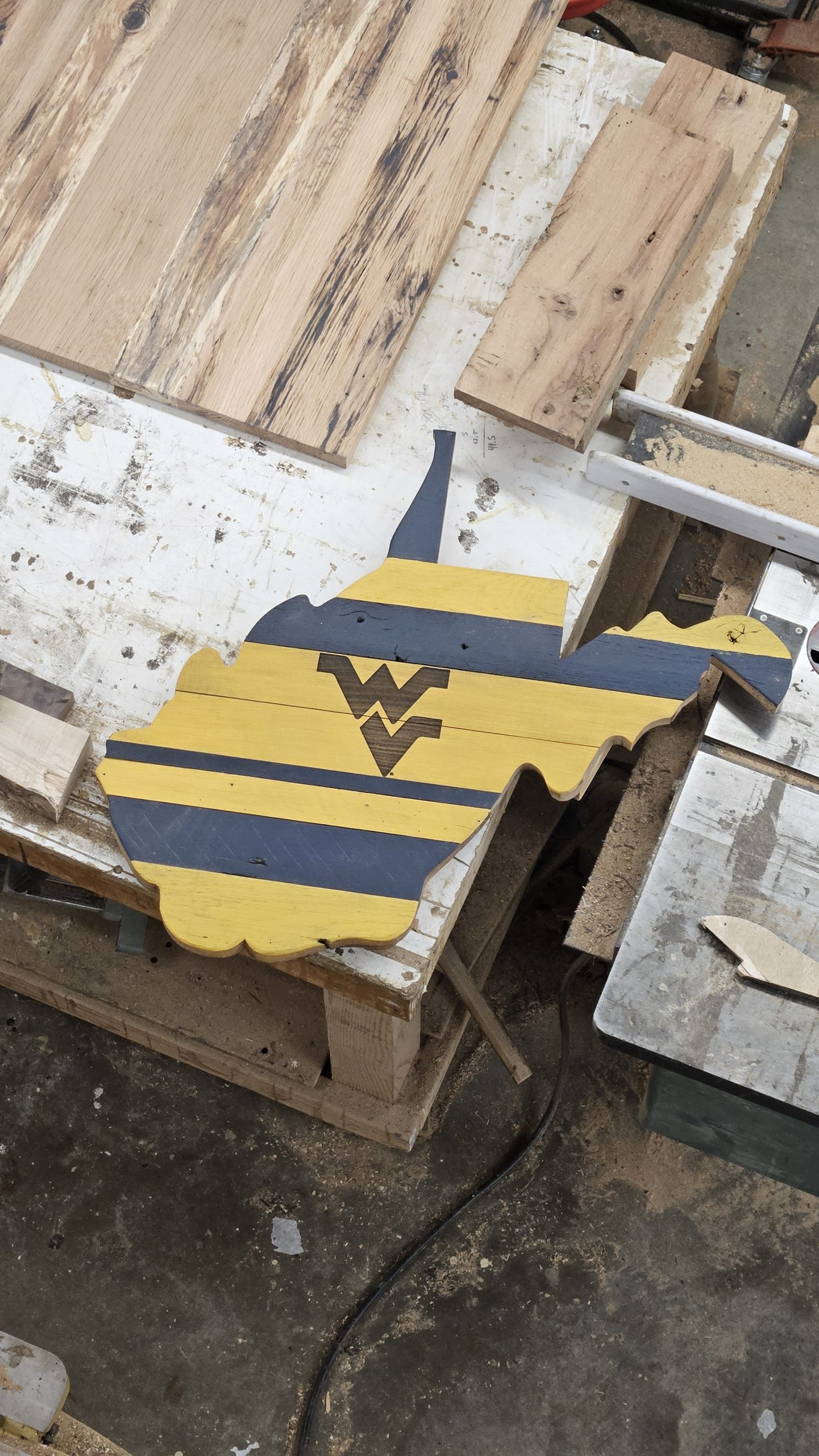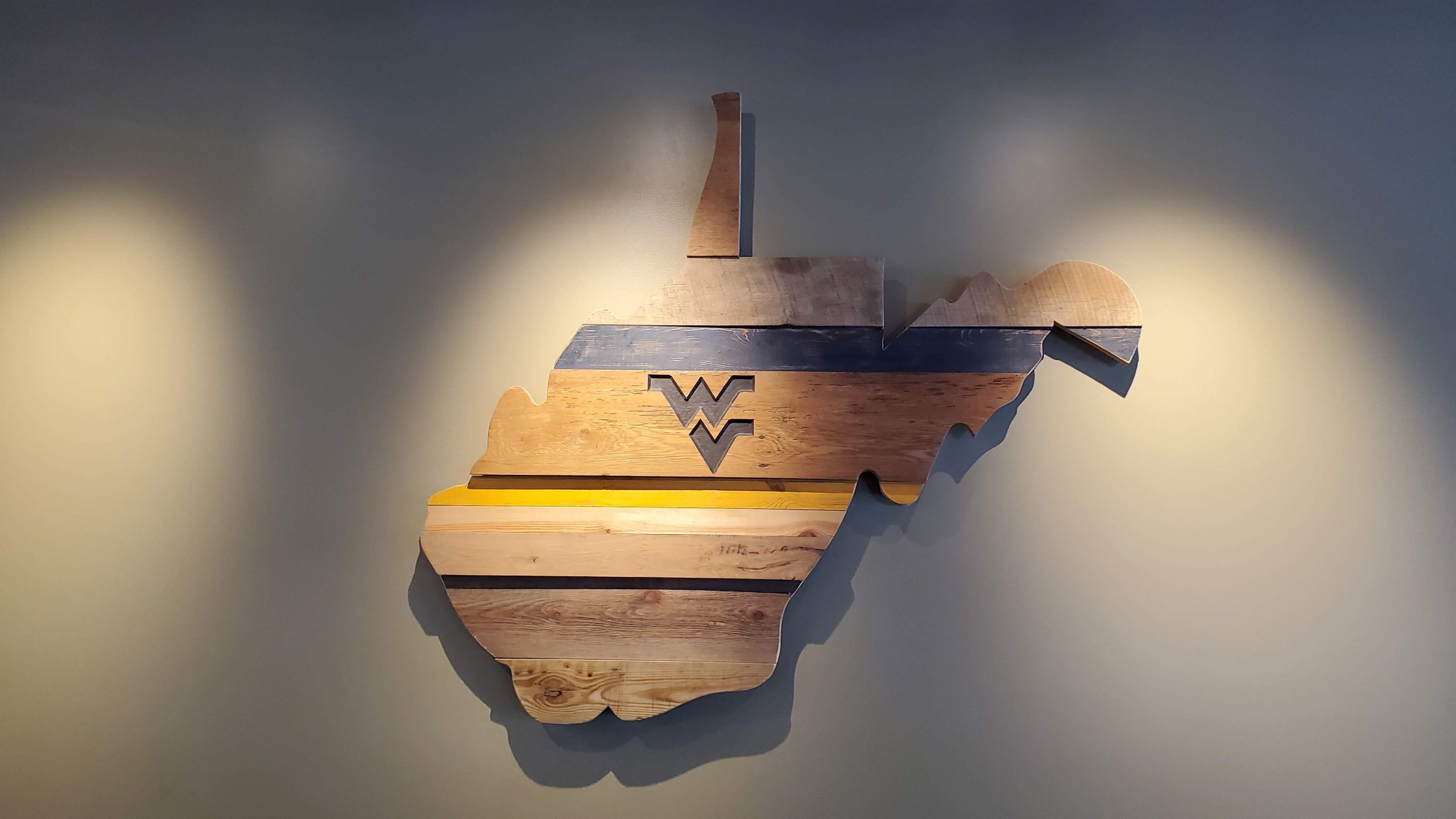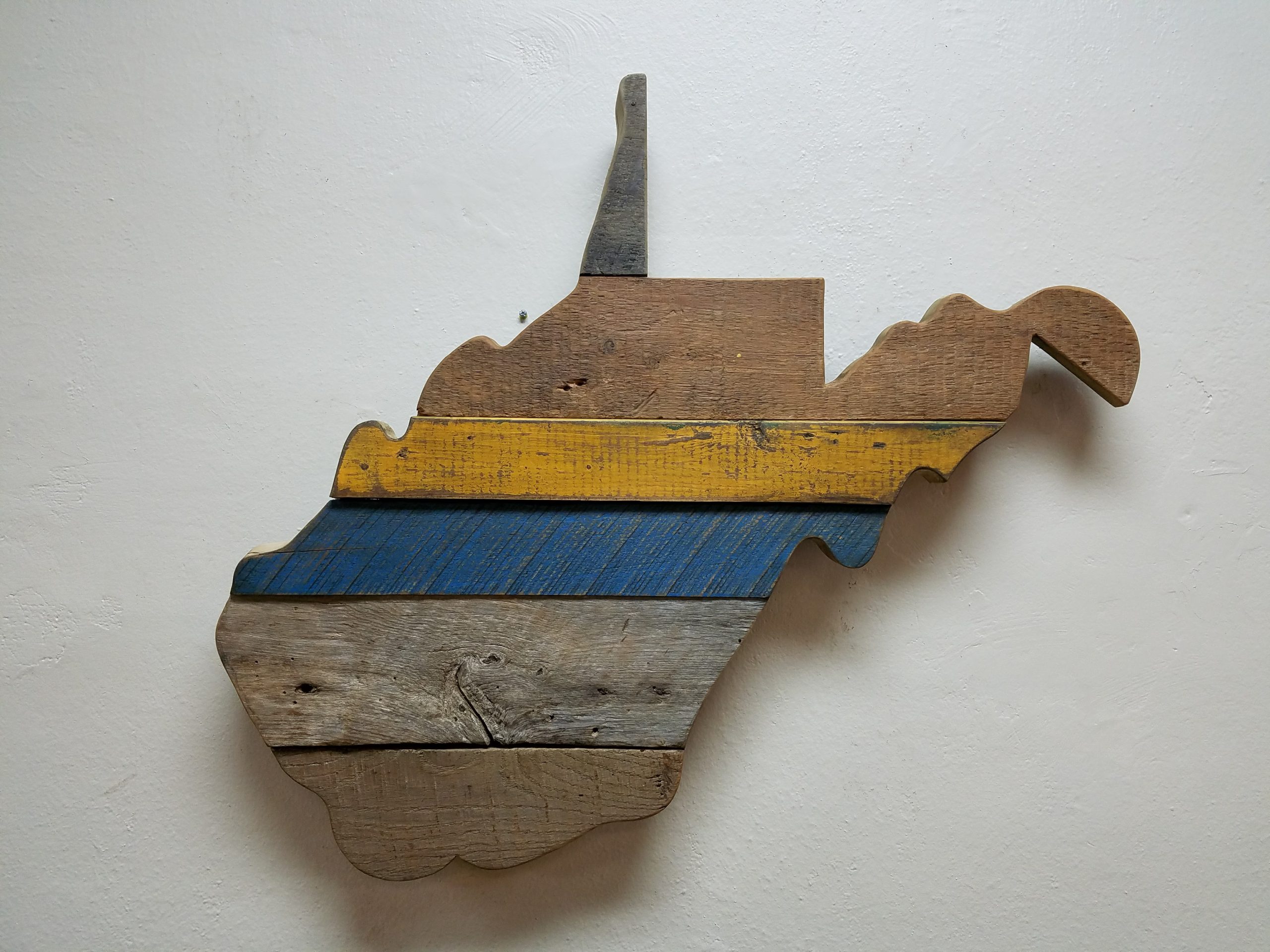 Show your Mountaineer pride and bring a piece of history home with our handmade reclaimed wood state, gold and blue style! Each piece is uniquely crafted from century-old wood salvaged from historic American barns, preserving the natural weathering, nail holes, and authentic textures that only time can create, and then we add that gold and blue charm.