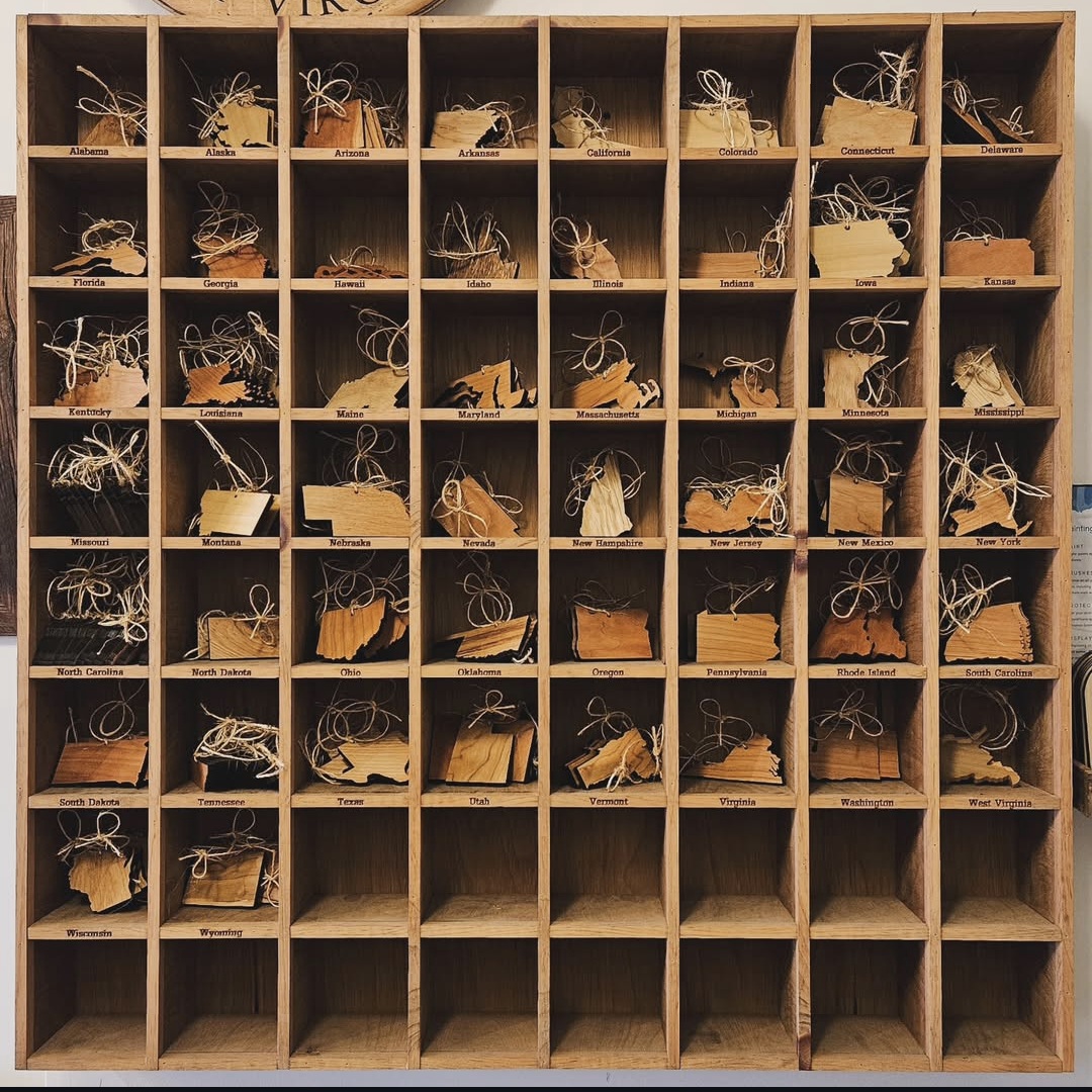 Crafted from locally harvested reclaimed wood, these state outline ornaments combine sustainability with unique charm. Perfect for adding a personal touch to your decor or gifting to loved ones. Hang them as they are or paint them to make your own one of a kind work of art!