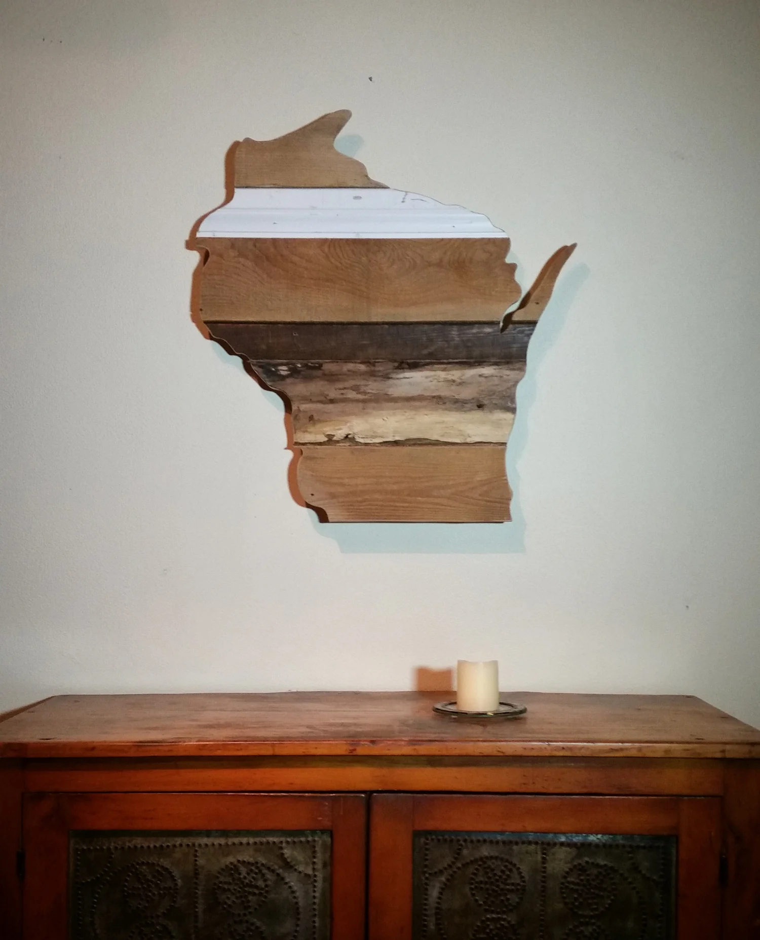 Show your love of home with a handmade one-of-a-kind work of art. Each state is made using 100% locally reclaimed wood. We write on the back where the wood came from so you know its history. Photos are examples. No two are alike!