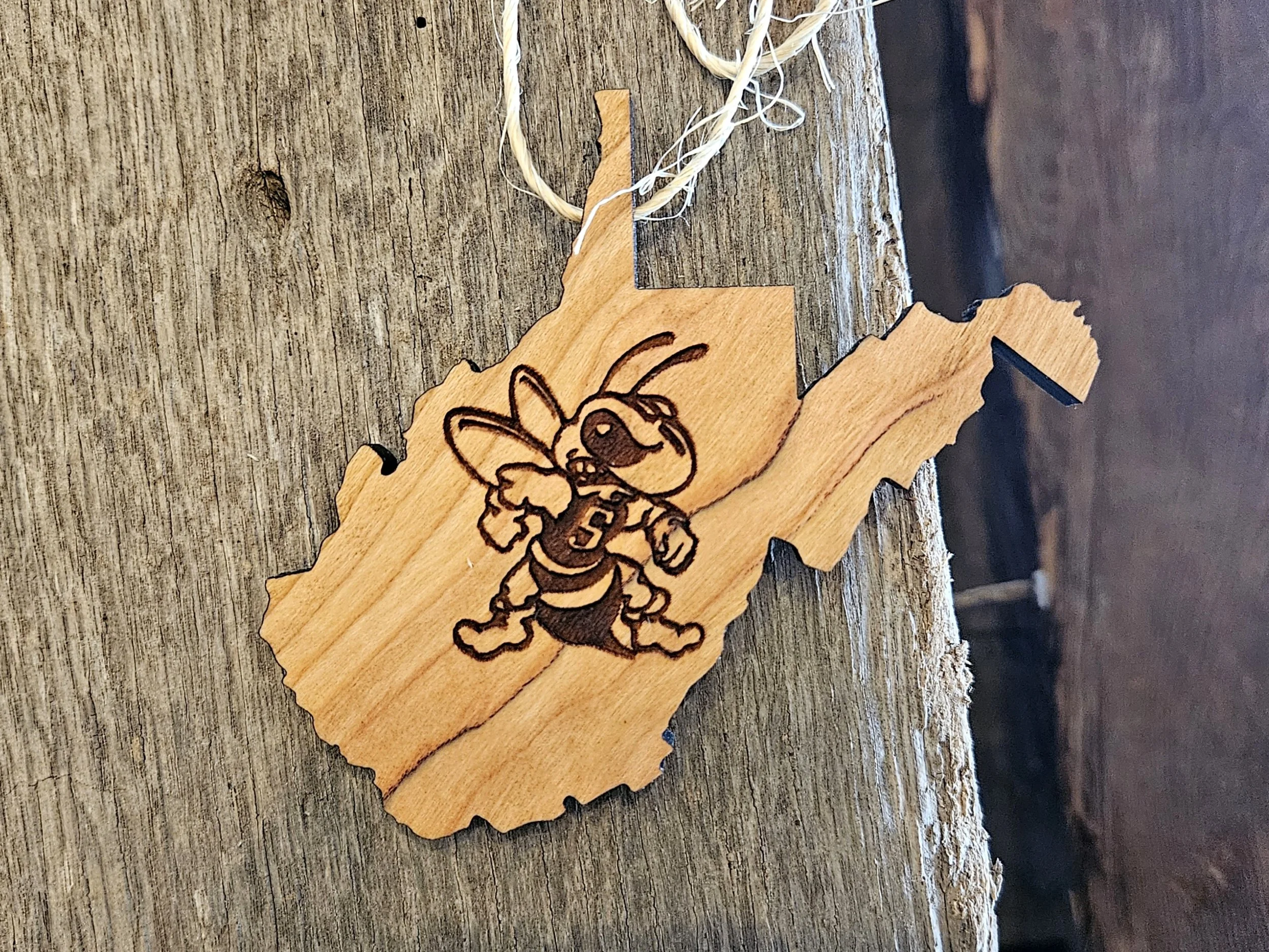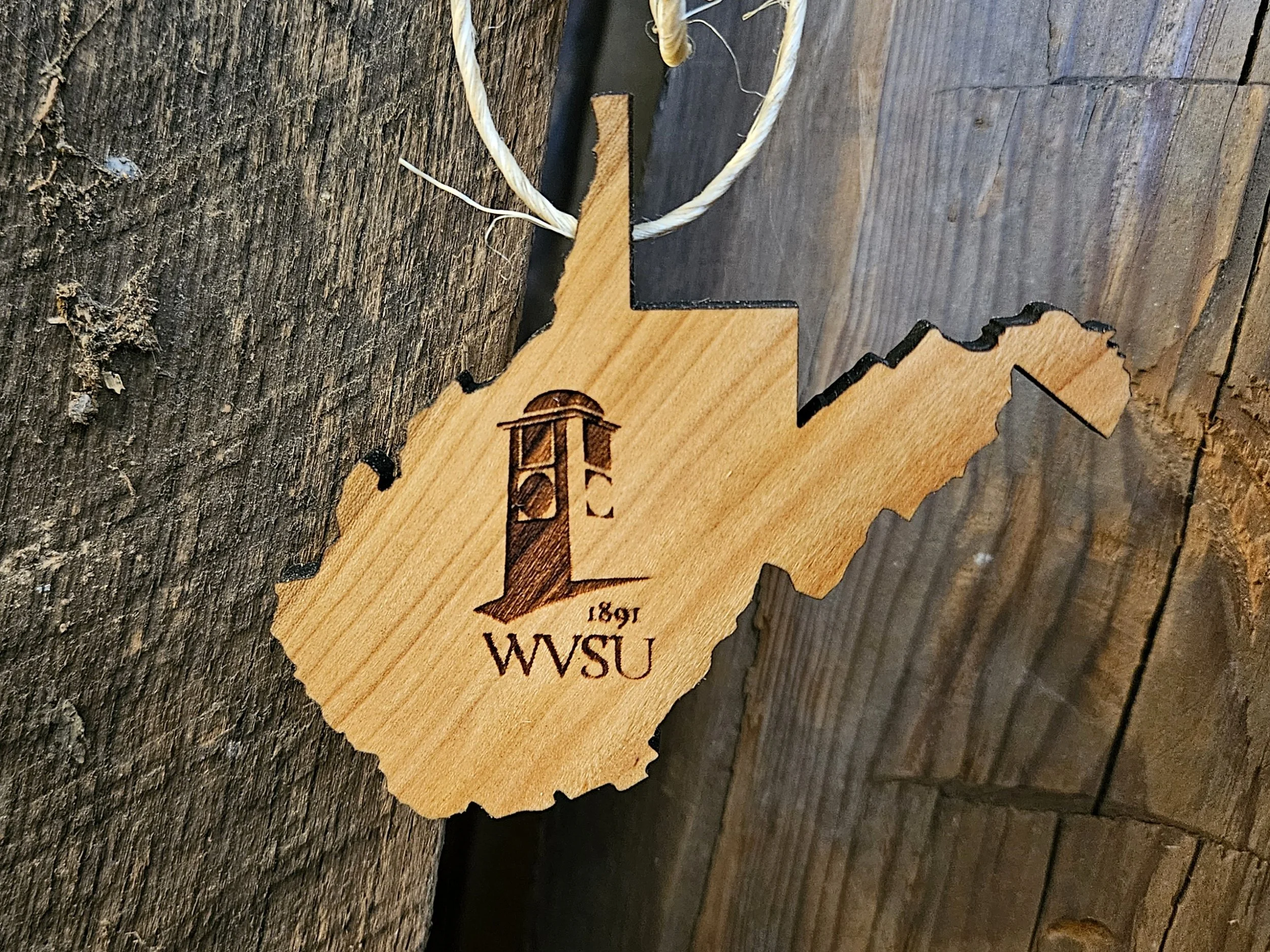 Show your WVSU pride with these one-of-a-kind officially licensed holiday ornaments. Each ornament is made using locally harvested hardwoods.